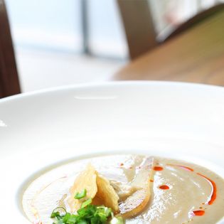 Zupa vichyssoise z gruszką i serem gorgonzola
