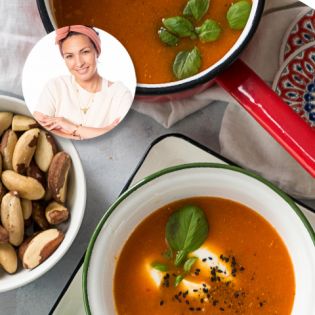 Zupa pomidorowa z Ajwarem i lizakiem z parmezanu