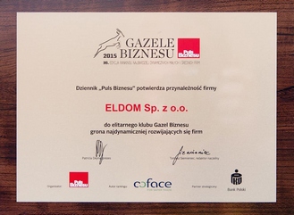 Gazele Biznesu 2015 - potwierdzenie przynależności ELDOMU do elitarnego grona najdynamiczniej rozwijających się firm