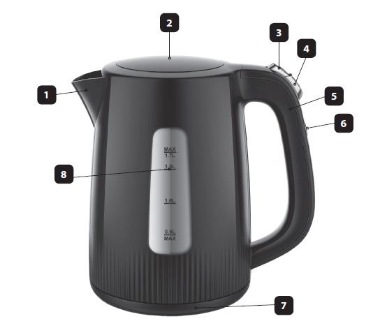 − Na wskaźniku (8) zaznaczona jest minimalna (0,5l) i maksymalna (1,7l) ilość gotowanej wody.