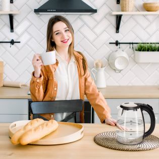 Niebanalna stylistyka i elegancja idą tu w parze z funkcjonalnością i bezpieczeństwem użytkowania. Urządzenie zostało wykonane z zastosowaniem wysokiej jakości podzespołów marki STRIX Technology. Posiada obrotową podstawę, potrójne zabezpieczenie przed przegrzaniem oraz filtr siatkowy, który nie dopuszcza do przedostawania się kamienia oraz innych mechanicznych osadów. Duża pojemność (1,7 litra) oraz wysoka moc sprawiają, że w czajniku można szybko zagotować sporą porcję wody. Poziom napełnienia wodą widoczny jest dzięki praktycznemu wskaźnikowi, a lampka kontrolna sygnalizuje pracę urządzenia.