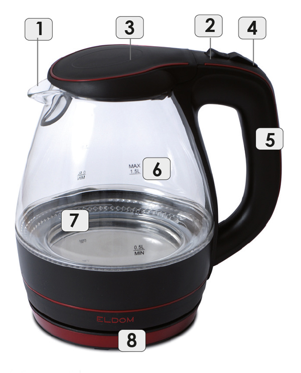 - dzbanek może być używany tylko z dołączoną, oryginalną podstawą
