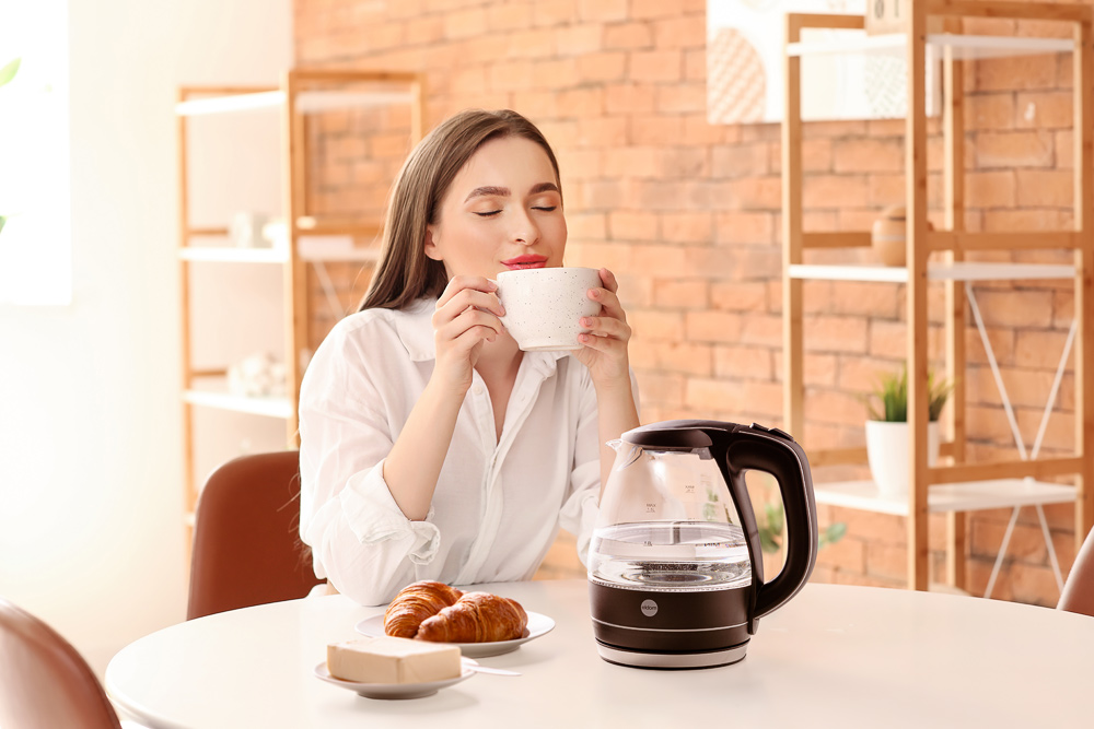 Dzięki wysokiej mocy urządzenia szybko zagotujesz w nim wodę dla całej rodziny. Obrotowa podstawa ułatwia ustawienie czajnika w dowolnej pozycji. Czajnik wyposażony jest w blokadę odchylanej pokrywy. Szklany, podświetlany pojemnik w czytelny sposób pokazuje ilość nalanej wody. Dzięki płycie grzejnej możliwe jest zagotowanie nawet niewielkiej ilości wody.