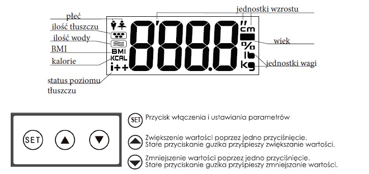Włączyć wagę przyciskiem “SET” w celu ustawienia osobistych parametrów.