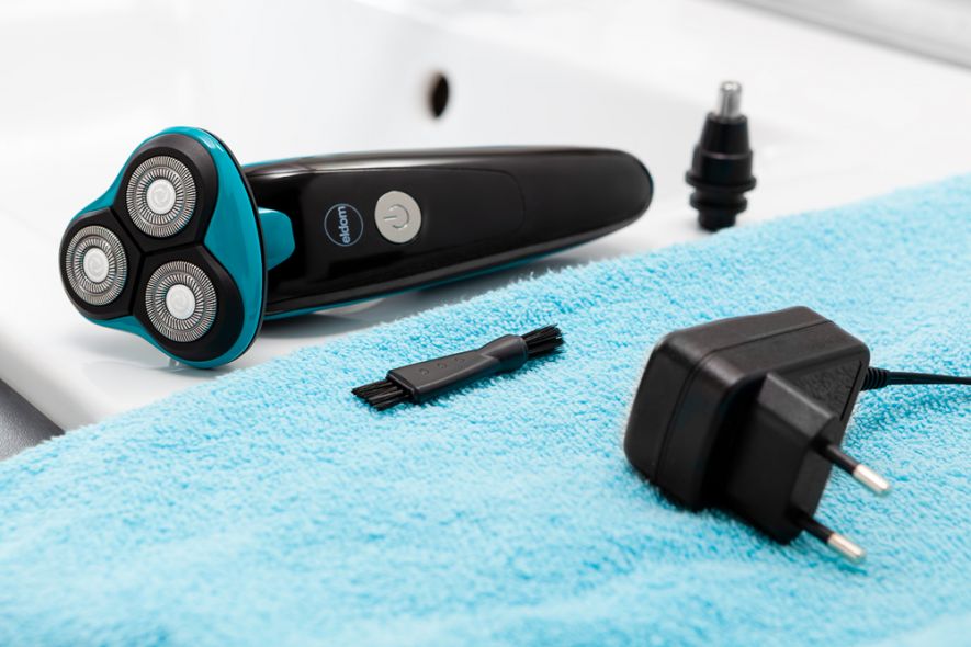 - głowicę golącą z trzema wirującymi ostrzami, która dopasowuje się do kształtu twarzy,