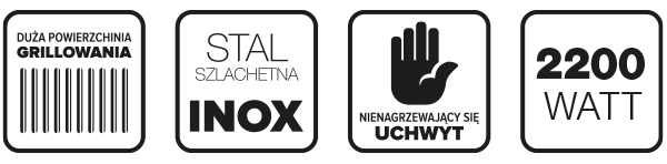 - grill płaski - duża powierzchnia grillowania - dedykowana szpatułka ułatwiająca czyszczenie płyt