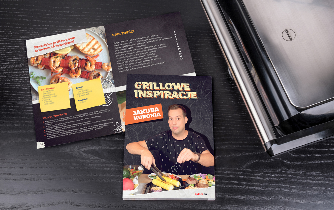 Do każdego grilla elektrycznego GK160 PARILL dodajemy książeczkę z autorskimi przepisami Jakuba Kuronia.