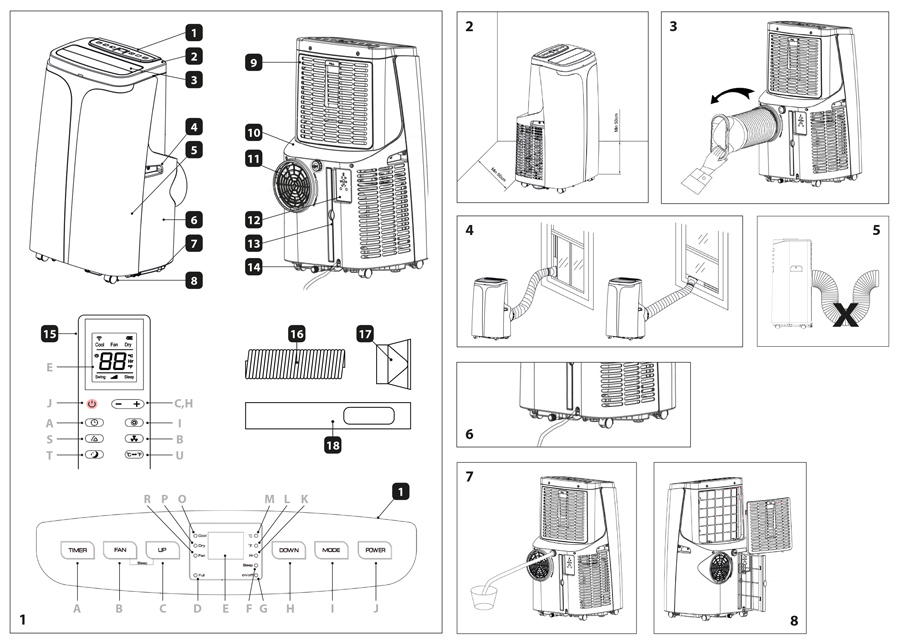 5. Instalacja klimatyzatora nie wymaga specjalistycznej wiedzy i może być przeprowadzona przez użytkownika we własnym zakresie, zgodnie ze wskazówkami i diagramami zawartymi w niniejszej instrukcji obsługi. Nieprawidłowa instalacja może być przyczyną wycieku wody, porażenia prądem i nieodwracalnie uszkodzić urządzenie. Firma Eldom Sp. z o. o. nie ponosi