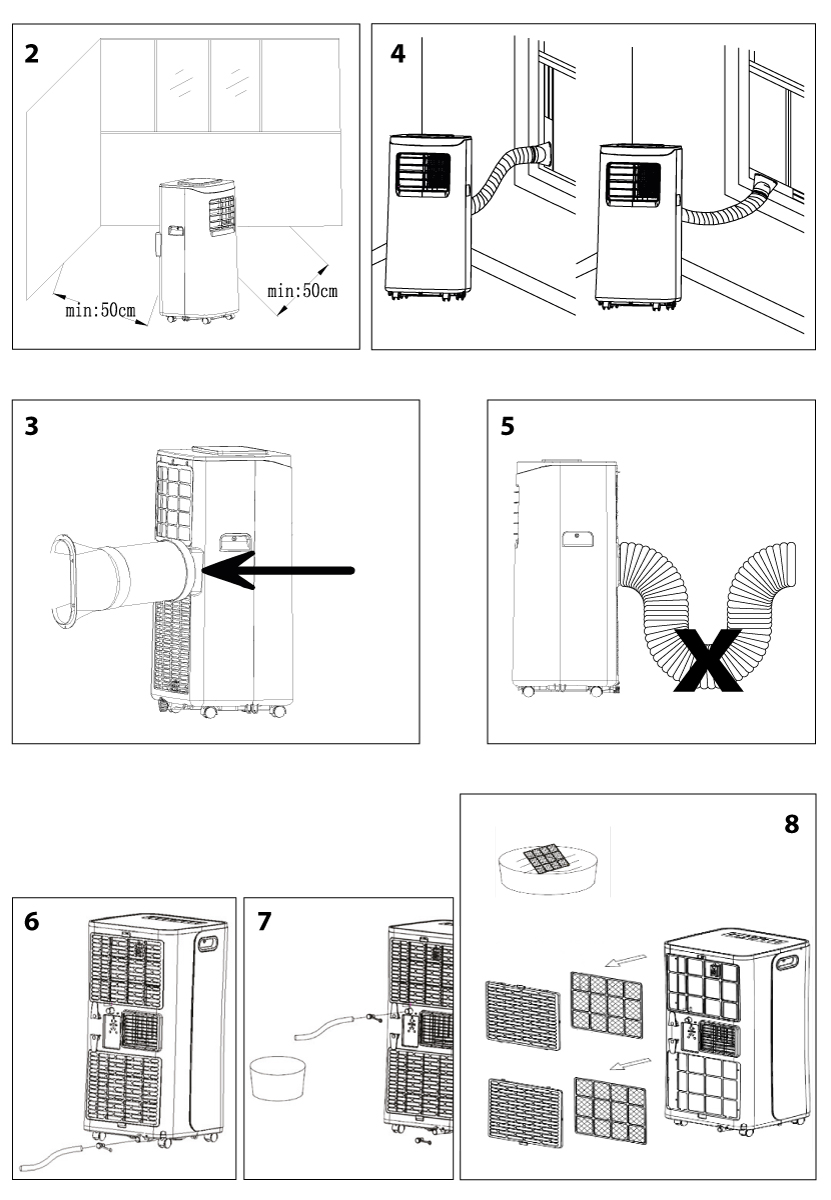 5. Instalacja klimatyzatora nie wymaga specjalistycznej wiedzy i może być przeprowadzona przez użytkownika we własnym zakresie, zgodnie ze wskazówkami i diagramami zawartymi w niniejszej instrukcji obsługi.
