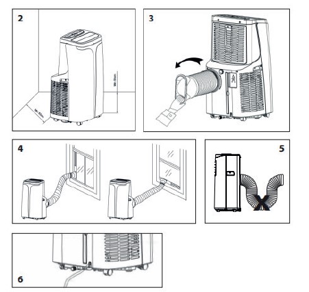 - Instalacja klimatyzatora nie wymaga specjalistycznej wiedzy i może być przeprowadzona przez użytkownika we własnym zakresie, zgodnie ze wskazówkami i diagramami zawartymi w niniejszej instrukcji obsługi. Nieprawidłowa instalacja może być przyczyną wycieku wody, porażenia prądem i nieodwracalnie uszkodzić urządzenie. Firma Eldom Sp. z o. o. nie ponosi odpowiedzialności za ewentualne szkody powstałe w wyniku niewłaściwego używania urządzenia.