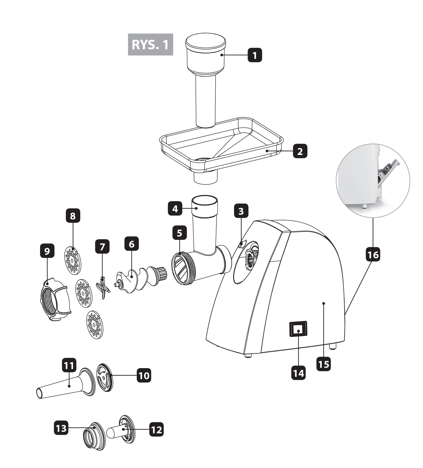 Nieużywane sitka można przechowywać w schowku (16) – RYS. 1.
