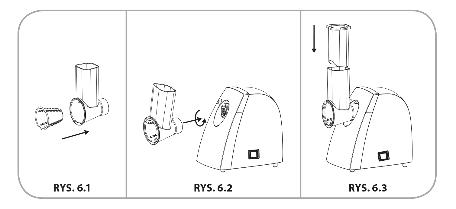 • Całość zamontować w korpusie (15) – RYS. 6.2. Sprawdzić czy szatkownica (B) została zablokowana.