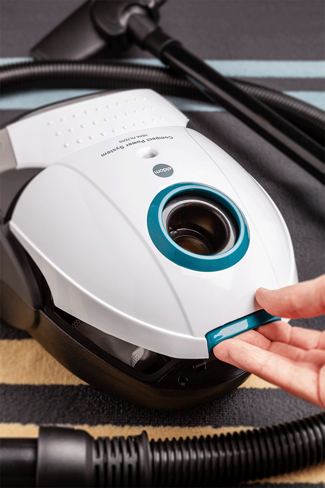 W odkurzaczu można używać zarówno worka płóciennego wielokrotnego użytku o pojemności 1,5 L (w zestawie), jak i jednorazowych worków model Eldom OSW900.