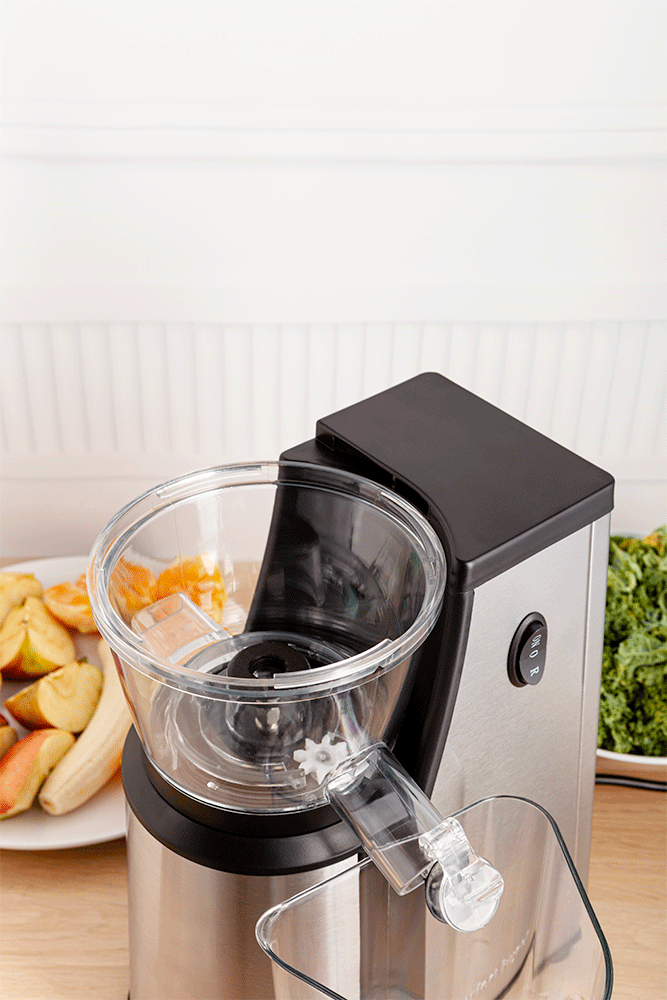 Dzięki takiemu procesowi sok pozyskany w PERFECT JUICER jest bardziej gęsty i mniej klarowny ponieważ zawiera więcej wartościowych składników. Solidny mechanizm wyciskający jest zrobiony z bezpiecznych dla zdrowia tworzyw.