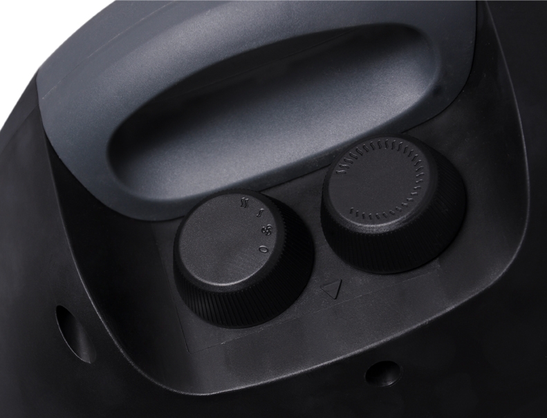 Urządzenie posiada termostat z płynną regulacją temperatury oraz dużą turbinę nawiewu, która zapewnia szybkie i równomierne rozchodzenie się nagrzanego lub schłodzonego powietrza. Jest wyposażone w lampkę kontrolną, wygodne pokrętła i praktyczny uchwyt do przenoszenia.