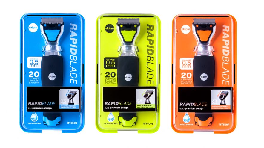 Model MT500 RAPIDBLADE jest dostępny w trzech wersjach kolorystycznych: pomarańczowy, żółty, niebieski