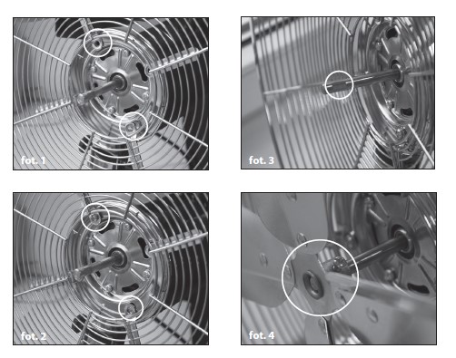 - śmigło (B) nasunąć na sworzeń, fot. 4 tak aby otwór na śrubkę znalazł się dokładnie nad wcięciem fot. 3 na sworzniu i dokręcić za pomocą śrubki (proszę zachować