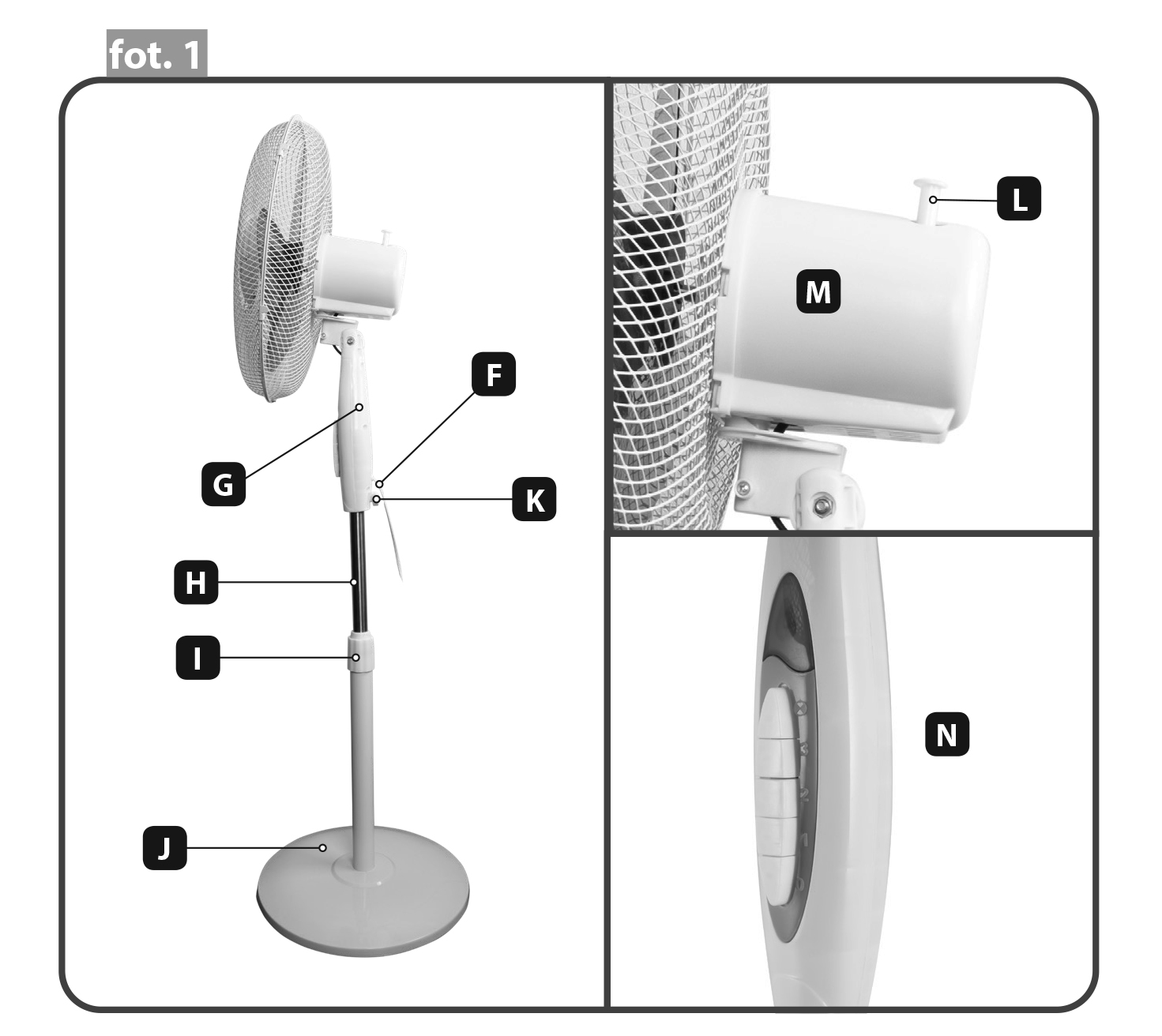 N. Wyłącznik oraz I/II/III bieg, lampka