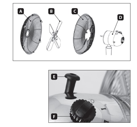 Włącznikiem (F) wybrać prędkość obrotów wentylatora (I, II, III). Włączenie urządzenia następuje po przekręceniu włącznika (F) na jedną z wybranych pozycji.