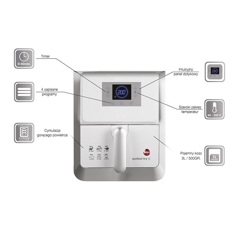 - technologia beztłuszczowa - gorące powietrze zamiast tłuszczu