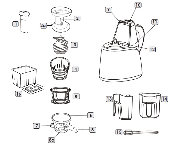 – urządzenie nie nadaje się do wyciskania soku z bardzo twardych i bogatych w skrobię owoców lub warzyw, np. trzciny cukrowej,
