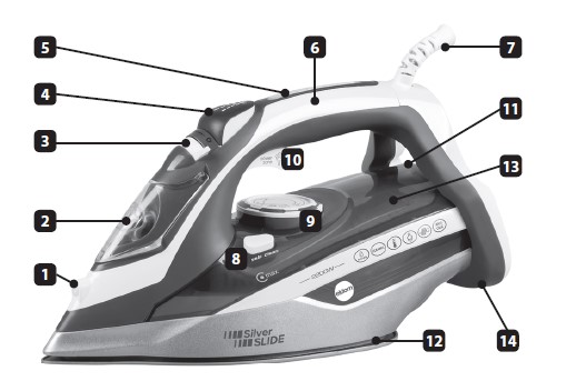 - żelazko wyposażone jest w podstawkę pionową (14) umożliwiającą wygodne i stabilne postawienie,